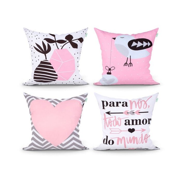 Almofada para Cama Quarto Rosa Estampada 4 Unidades 45cm x 45cm com Refil de Silicone Macio