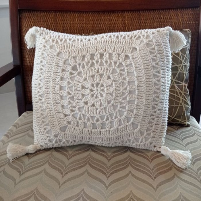 Frente feita em crochê à mão, parte de traz tecido poliéster.