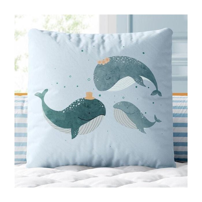 Almofada Quadrada Família Baleia Grão de Gente Azul