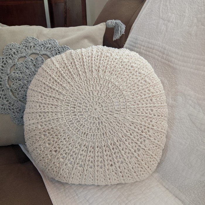 Almofada Redonda Crochê Estilo Boho Cru