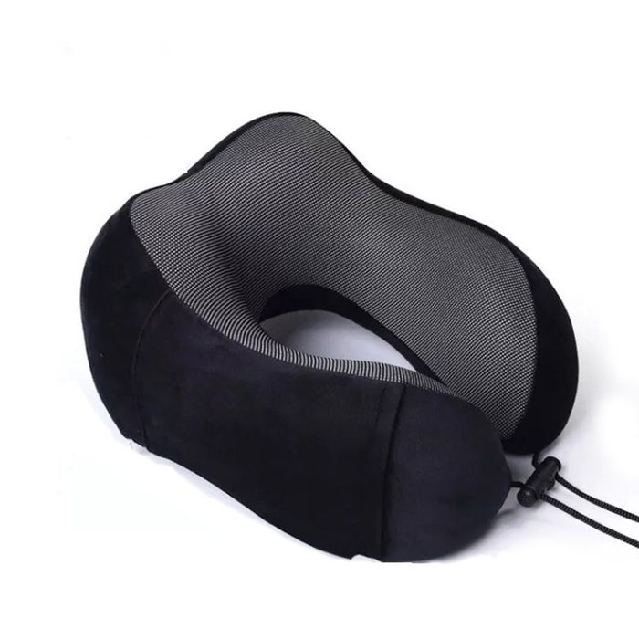 Almofada Travesseiro Pescoço Viagem Fecho Ajustável Cor:preto preto