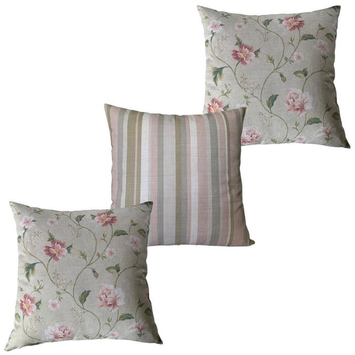 Almofadas Cheias Impermeável Estampa Digital 100% Algodão Kit 3 43cmx43cm Estampa:floral Romântica E Listrada