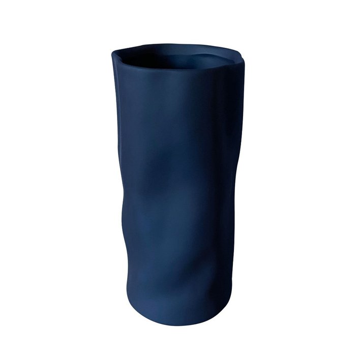 Vaso de cerâmica cilíndrico, tipo amassado. Cor azul marinho.Medidas: 11x11x23cm