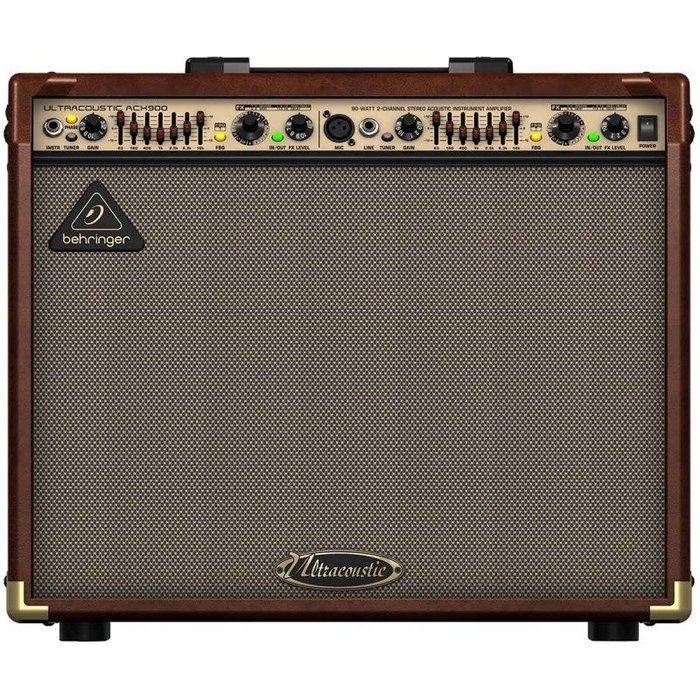 AMPLIFICADOR BEHRINGER ULTRACOUSTIC ACX-900 | 2 CANAIS ESTÉREO | 90W TOTAL MODELO: ULTRACOUSTIC ACX900 O Ultracoustic ACX900 da Behringer é um amplificador para violão e voz de 90 Watts com 2 canais stereo, processador de efeitos com 16 FX, FBQ (detecção de feedback para revelar microfonia), equalizador gráfico individual de 7 bandas, saída balanceada XLR para ligação direta com mixer. O Ultracoustic ACX900 oferece uma multiplicidade de opções como, por exemplo, o processador integrado multi-efeitos de 24 Bits ou o sistema de reconhecimento de feedback FBQ, para confereir ao seu som a última afinação. As inúmeras possibilidade de ligação de aparalhos de efeitos externos ou de gravação de playbacks tornam o Ultracoustic ACX900 num