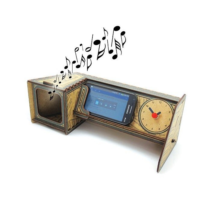 Para aqueles que adoram escutar músicas e não ficam sem ela a nenhum momento, este amplificador vai manter sua mesa sempre decorada, mesmo quando estiver sem o celular na base, ele possui um relógio analógico e uma estampa de com desenhos de vitrola e notas musicais.O mais legal não precisa de energia para amplificar o som do seu celular.Para funcionar basta encostar o seu celular na base, o ampliador é universal (funciona com os modelos: iphone alto-falantes na parede de baixo do aparelho e samsung com alto-falantes na parte de trás do aparelho. )O relógio analógico é silencioso, e não faz barulho de tic-tac.EspecificaçõesDimensões:Largura: 11 CmComprimento:32 CmAltura:11 CmPeso0.327 KgCoresExterna: Mdf Com Diversas CoresInterno: Mdf CruMaterialMdf Com 3 MmMontagemSão De Encaixes E Anéis De BorrachaInstruções De LavagemUsar Pano Seco, Sem Produtos De LimpezaProduto Segue Desmontado, A Montagem É Feita De Encaixe E Anéis De Borracha.Máquina Do Relógio É Contínua E Silenciosa.Não Acompanha Pilha Do Relógio
