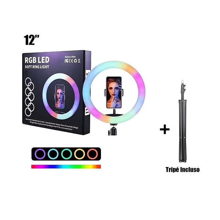Anel de Luz Ring Light Rgb 12" com Tripé 1,6m para Vídeos Fotos e Transmissões Cor:colorido