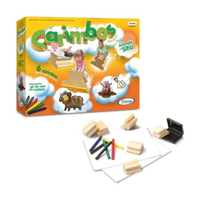 A linha de carimbos Educativos Xalingo é composta por 8 modelos diferentes para você colecionar. Cada tema vem com 6 carimbos de madeira, 01 almofada com tinta atóxica, giz de cera e um 01 bloco de papel. São desenhos superdivertidos que vão encanar a meninada. Indicado para crianças acima de 4 anos.