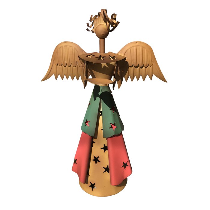 Este Anjo com Estrelas Enfeite Para o Natal Porta Vela Decoração é excelente para todos os ambientes. Destacam-se em decorações de ambientes internos e/ou de natal. A peça é fabricada com chapa fina fria e arame recozido. A pintura é realizada com revólver de alta pressão utilizando esmalte sintético, neutrol e verniz, dando assim um acabamento perfeito e proporcionando proteção à peça.