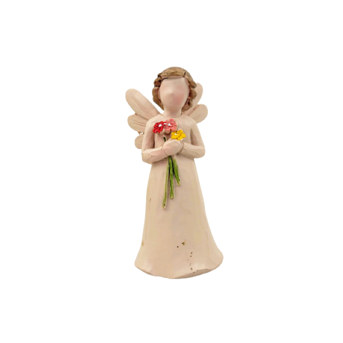 USO: Que tal usar este lindo anjinho com flor, feita em resina, na sua decoração? É também uma ótima opção para presentear alguém especial.