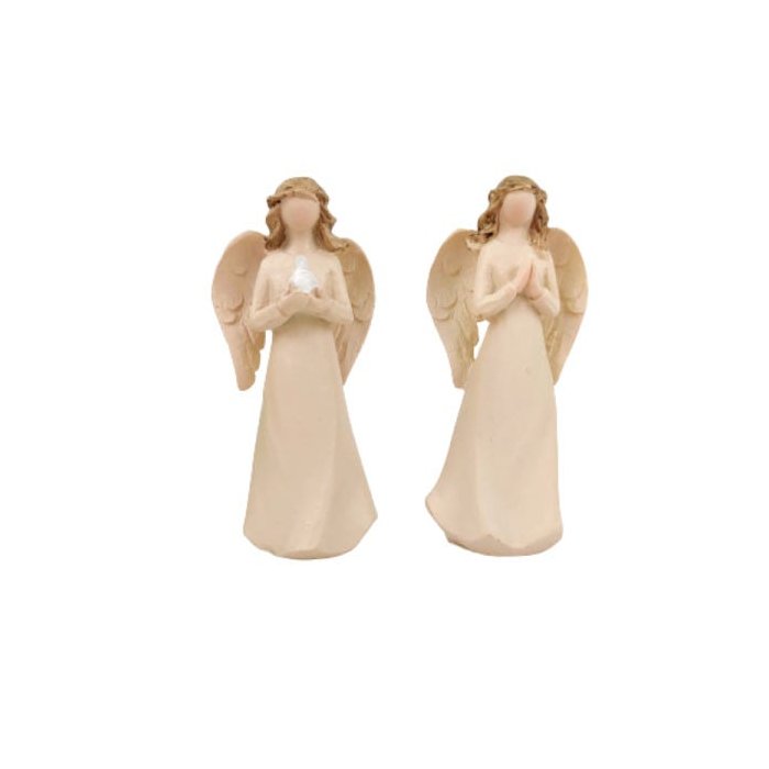 USO: Que tal usar estas lindas anjinhas rezando e segurando um pombo, feitas de resina, na sua decoração? É também uma ótima opção para presentear alguém especial.