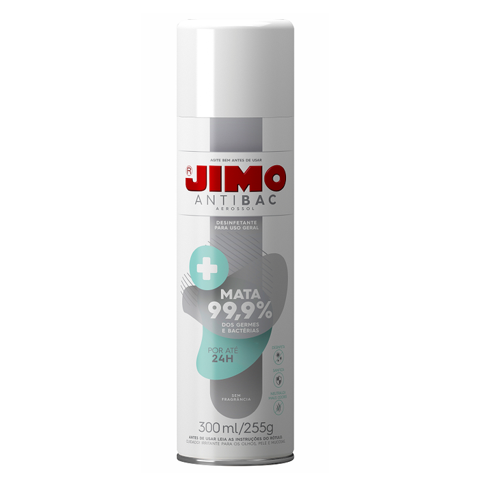 Diariamente temos contato com superfícies e objetos que podem estar contaminados com germes que causam graves danos à nossa saúde. Surpreenda-se com JIMO ANTIBAC Aerossol, um desinfetante que, além de limpar diversas superfícies, mata bactérias e fungos*, evitando o mofo. Ele possui residual para bactérias, ou seja, forma uma película e continua agindo. Tem o poder de neutralizar as moléculas causadoras de maus odores**.