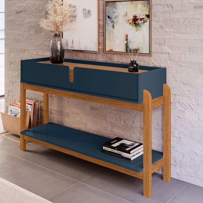 Aparador 2 Gavetas Ajax Azul Cobalto/cedro