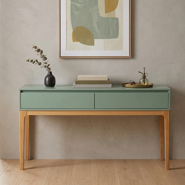 Aparador 2 Gavetas com Pés em Madeira Maciça Bento Yescasa Sálvia/Amêndoa