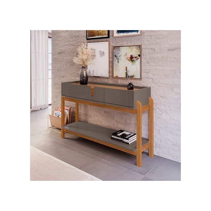 Aparador 2 Gavetas Lizz Cinza Perola/cedro - Casa D Móveis