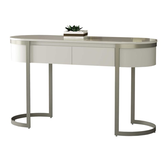 O Aparador Arkadina com design moderno e elegante com sua base em aço dourado ,pintura laca premium e tampo de vidro pintado . Com duas gavetas com corrediças telescopicas