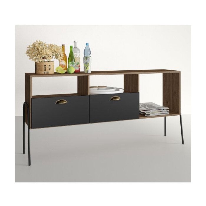 Aparador 2 Portas 3 NIchos Br112 Estilare Preto/Madeirado