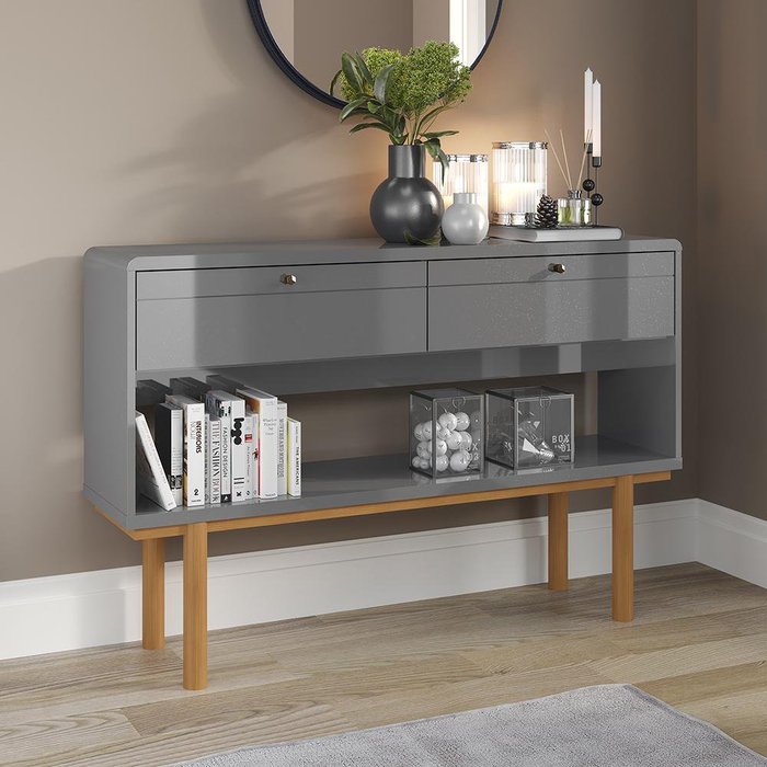 Aparador 2 Portas Catar 1.25 Retrô Lukaliam Móveis Cinza Perolizado/Off White Perolizado