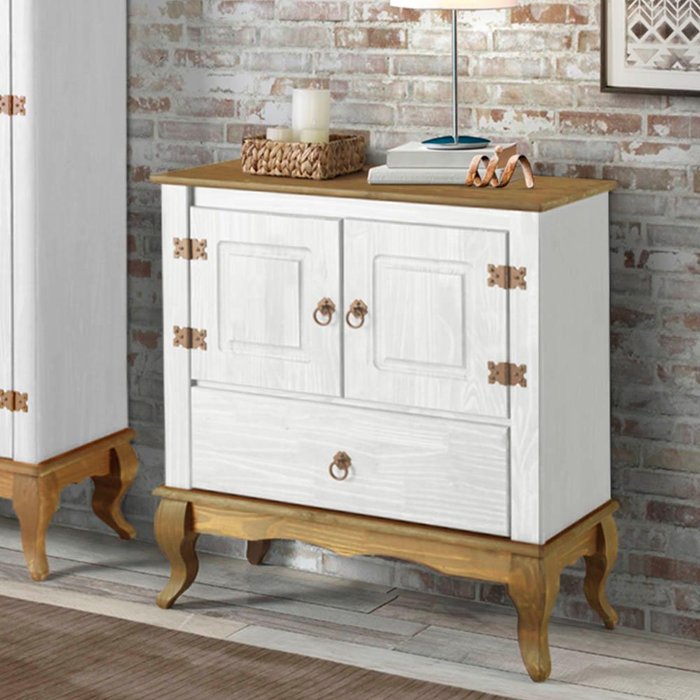 Madeira maciça em Pinus (madeira de reflorestamento): Garantia de durabilidade e compromisso com a sustentabilidade.2 portas com fechos magnéticos: Praticidade e segurança no armazenamento, com um toque de elegância.1 gaveta espaçosa com corrediças de madeira: Facilidade de uso e amplo espaço para organização.Dobradiças e puxadores mexicanos: Detalhes artesanais que conferem charme e autenticidade.Tampo amplo e resistente: Ideal para exibir itens decorativos ou apoiar utensílios de uso diário.Acabamento em pintura UV com brilho semi fosco: Proteção e beleza, com um acabamento sofisticado.Pés estilo Luis XV: Design clássico que agrega personalidade e elegância ao ambiente.Dimensões do Produto: Largura 80 cm; Profundidade 36 cm; Altura 83 cm.Itens Inclusos: 1 balcãoComplexidade da montagem: Média, pode ser montado por mais de uma pessoa e/ou necessite de maior conhecimento para montagem.Recomendações de uso, manutenção e limpeza: Limpar com flanela ou pano macio seco, não utilizar produtos abrasivos, desengordurantes, álcool ou solvente. Não expor o produto diretamente a luz solar e à umidadeGarantia: 3 mesesOBS: Foto meramente ilustrativa, objetos, utensílios e decoração não fazem parte do produto.