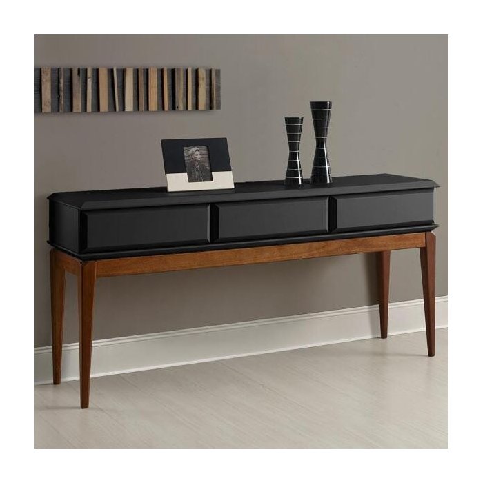 Para deixar sua sala ou escritório ainda mais sofisticado e ao estilo Retrô, o Aparador Ravel é a sua procura certeira. Um móvel com design moderno ao estilo antigo elegante. Perfeito para você que deseja um ambiente com mistura de conceitos. Sua estrutura fica em pés altos em madeira maciça, com 3 gavetas com abertura em toque. O acabamento é impecável, todo em pintura de laca fosco.
