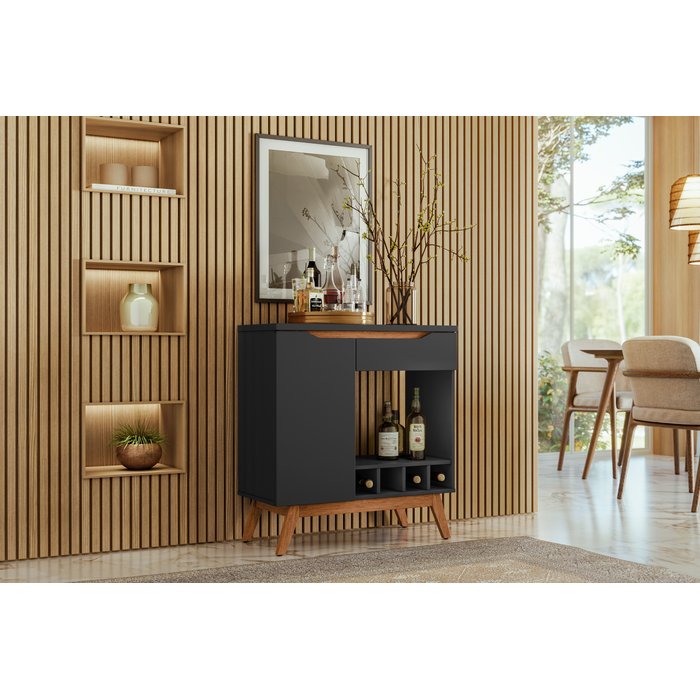 Aparador Adega 1 Porta 1 Gaveta Retrô Tóquio Móveis Preto