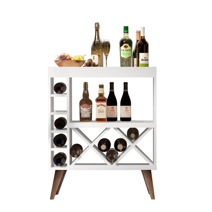 Aparador Adega Bar Balcão Retrô Pés Madeira: Branco Branco