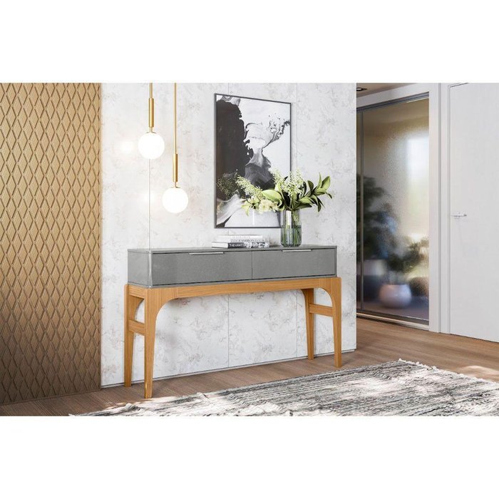 Aparador Amalfi com 2 Portas e Pés em Madeira Lukaliam Cinza Perolizado-tauari