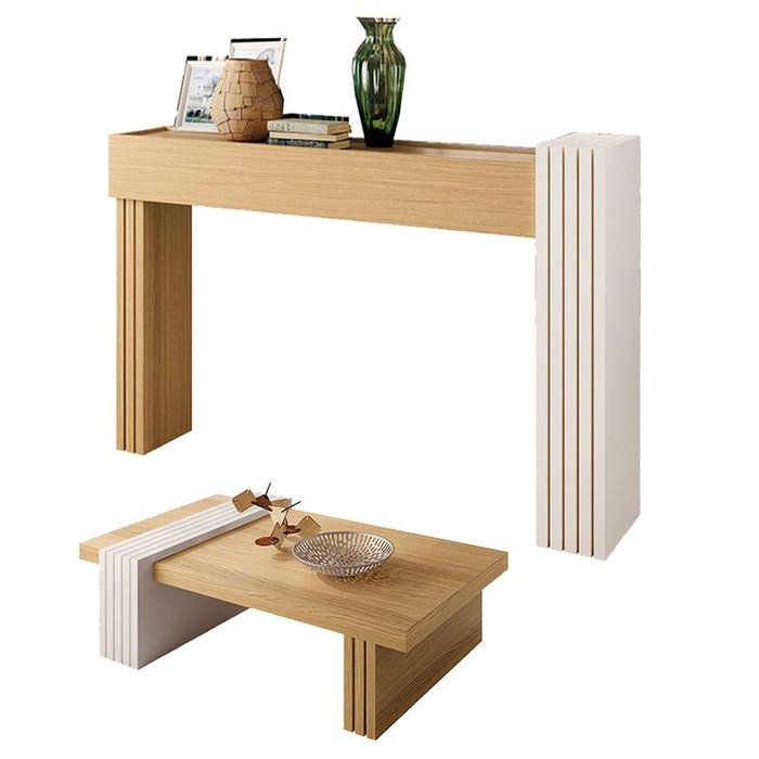 Aparador Astro e Mesa de Centro Luna Freijó Off White – Hb Móveis