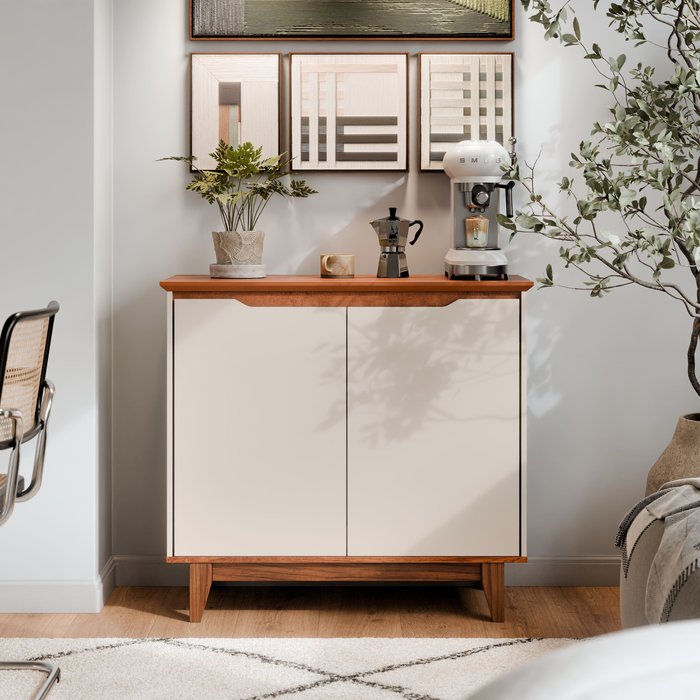 Aparador Bancada Sala Buffet Balcão Armário Cozinha Cantinho do Café 2 Portas Flow Offwhite/Freijó