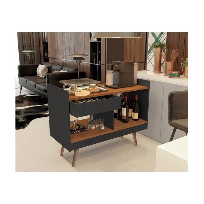 Aparador Bar 4064 Pé Madeira Gaveta Abertura Ambos os Lados JB BECHARA Preto/Caramelo Preto/Caramelo
