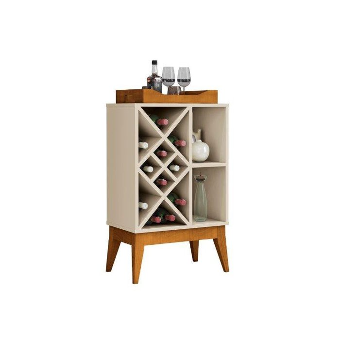 Aparador / Bar / Ba com Adega e Nichos Modelo Retrô com Pés em Madeira Maciça Acompanha Bandeja em M