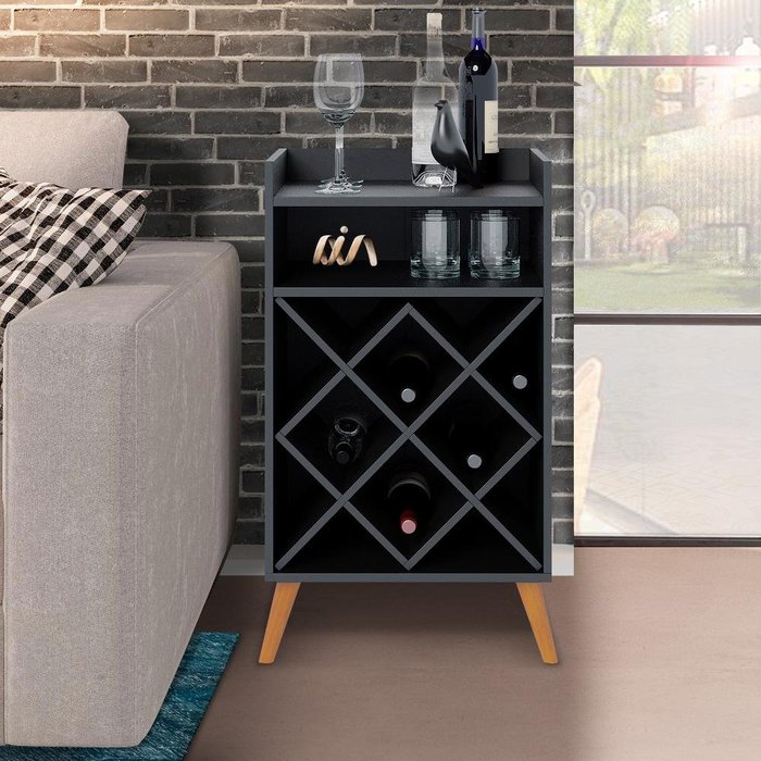 Aparador Bar Com Adega 12 Garrafas Preto Fosco Lagos Shop JM