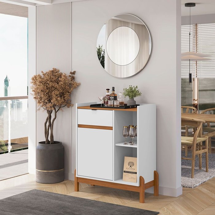 Aparador Bar para Sala de Jantar Bari Branco/Cedro