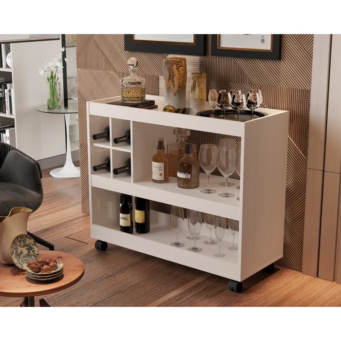 Aparador Bar Sala De Jantar Com Rodinhas Adega 4050 Perola