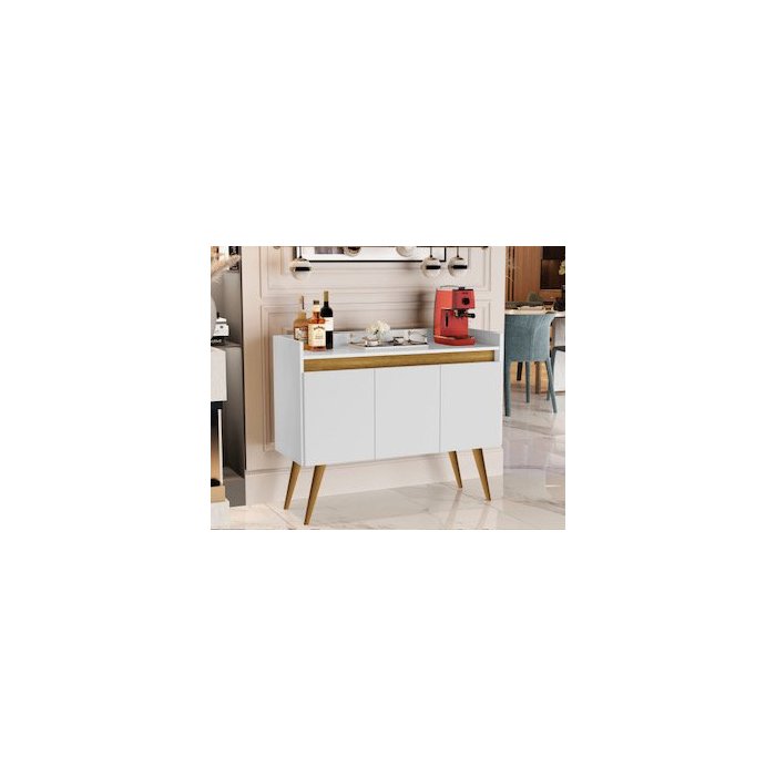 Aparador Buffet 3 Portas com Pés Bar Veneza Delux Retrô 90cm Branco/nature – Jlar Móveis