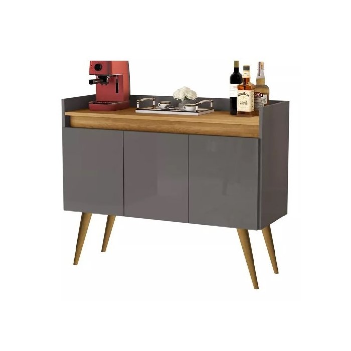 Aparador Buffet 3 Portas com Pés Bar Veneza Delux Retrô 90cm Cinza/nature – Jlar Móveis