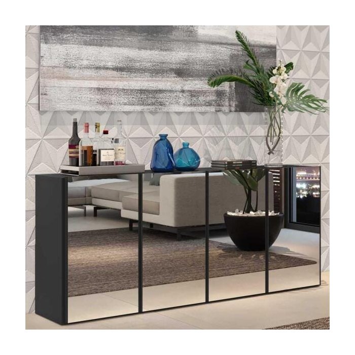 Aparador Buffet 4 Portas com Espelho Vegas Preto Preto