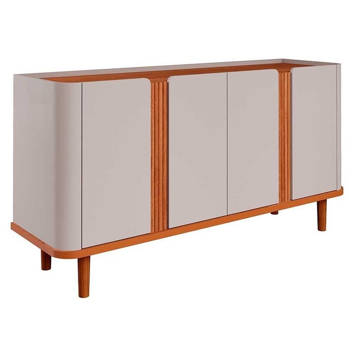 Aparador Buffet 4 Portas Pés de Madeira Retrô para Sala de Jantar 100% Mdf Eva Cimol Off White/ Off White