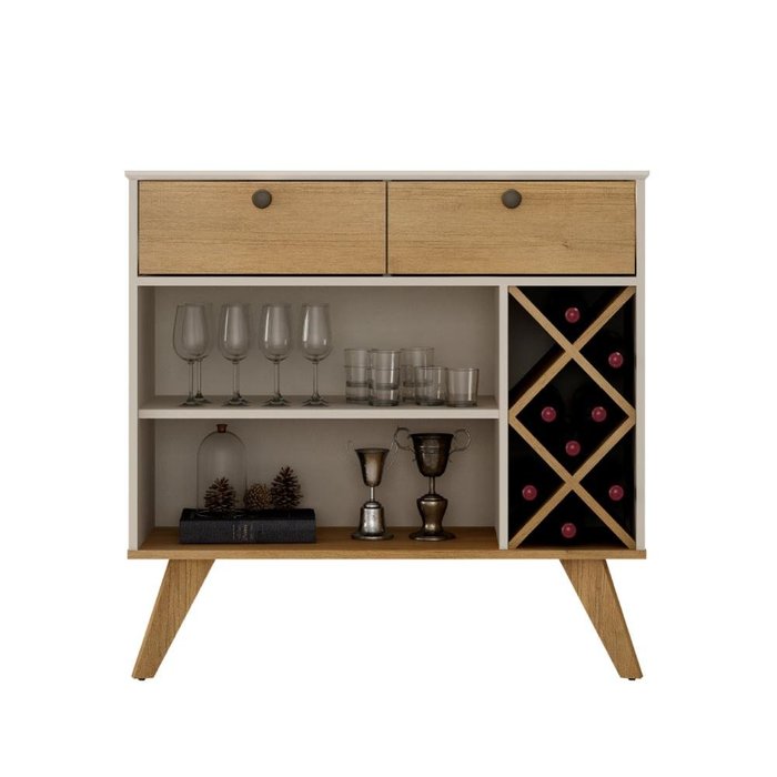 Aparador Buffet Adega Alice 0,91m 2 Gavetas Valdemóveis Off White / Cinamomo
