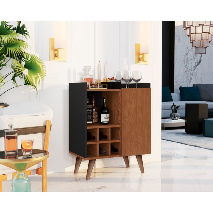 Aparador Buffet Adega Bar 1 Porta 6 Garrafas Saint Cor Preto com Freijo - Comprar Moveis em Casa