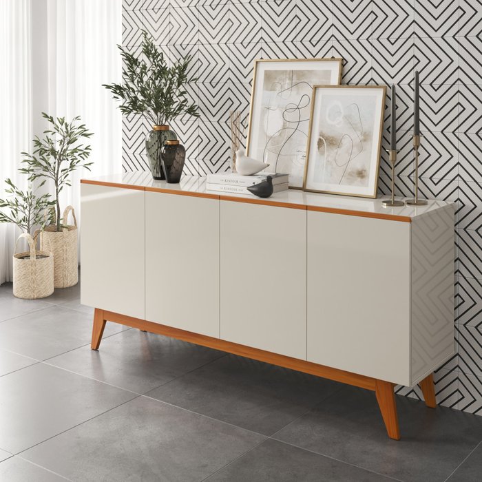Aparador Buffet Ares 4 Portas Brasmacol - Off White/Nature
