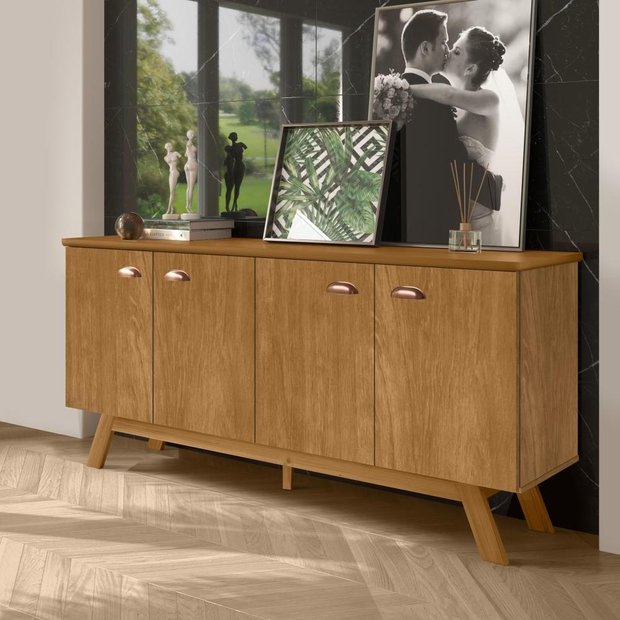 O buffet da Tebarrot é feito em MDF/MDP/Pinus – Pintura Semi Brilho, possui 4 portas com puxadores de plástico 64mm na cor cobre fosco, tampo de 18mm em MDF. Base em madeira maciça pinus. com um ótimo custo benefício. Peso suportado 20 quilos distribuídos uniformemente. Especificações: - Comprimento: 163,5 cm - Largura: 41,3 cm - Altura: 77 cm - 4 Portas de Correr - Material: MDF, MDP e Pinus - Cor: Nature - As configurações do seu monitor ou dispositivo móvel podem afetar a tonalidade da cor do produto. Conferir na descrição. - Recomendação de Limpeza: Limpar com pano seco para retirar o pó. Não aplicar produtos abrasivos. - Produtos de Enfeite e Eletrônicos Não Estão Inclusos.