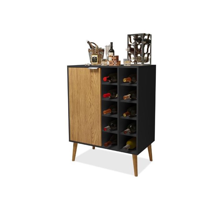 Aparador Buffet Bar Adega para 10 Garrafas Porta Retrô Pés Madeira Miami:preto Fosco/nature