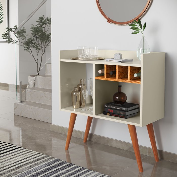 Aparador Buffet Bar Rubi Adega com Pés Palito - Off White com Nature Off White com Nature