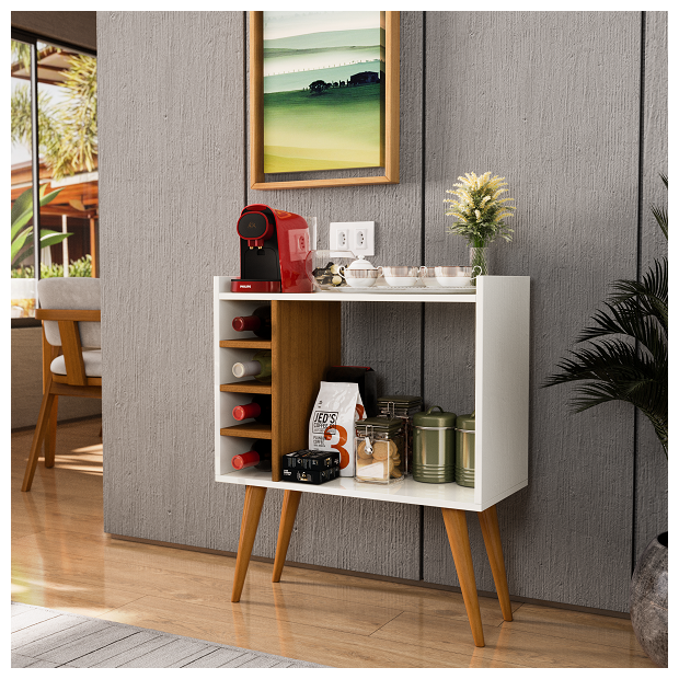 O Aparador Berlim é perfeito para diferente tipos de ambientes, harmozina tanto como bar e também como cantinho do café. Seu design compacto se adapta dos menores até os maiores lugares, se tornando ponto de destaque na decoração. Produzido em MDP de 12mm super resistente e pés palito retrô em madeira de alta qualidade. Ideal para acomodar cafeteiras, xícaras, taças, objetos de decoração e etc.