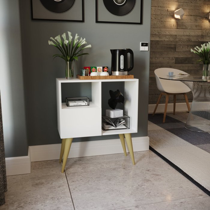 O tampo pode ser utilizado para itens decorativos, e bebidas.
