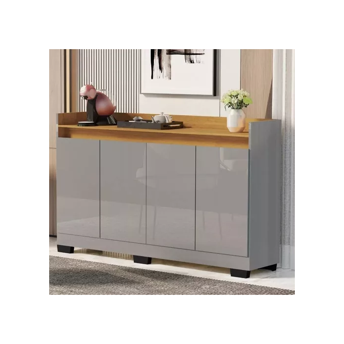 Aparador Buffet Cinza Espaçoso Moderno com 4 Portas para Sala Escritório Rl