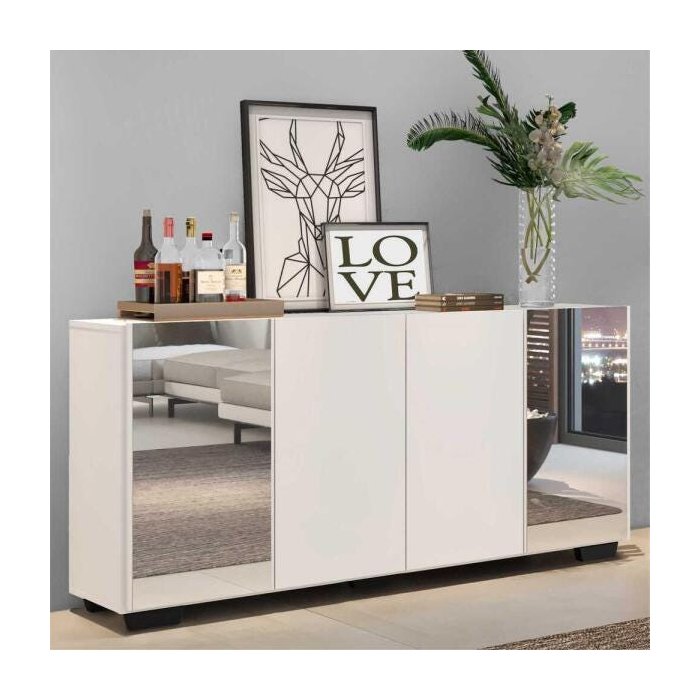 Aparador Buffet com Espelho e Pés Quadrados Vegas Branco/Preto