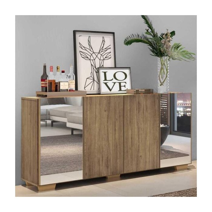 Aparador Buffet com Espelho e Pés Quadrados Vegas Rustic/Natural Nature
