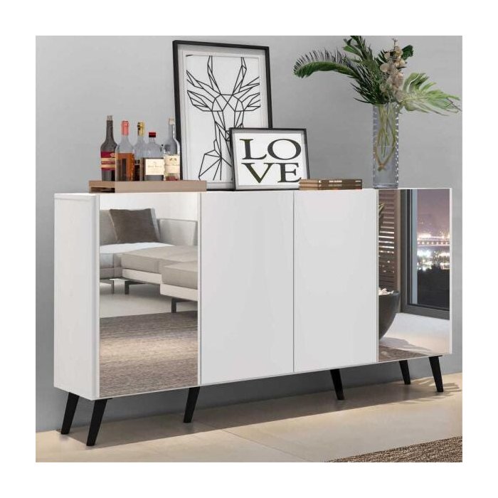 Ver mais imagens de Aparador Buffet com Espelho e Pés Retrô Vegas Branco/Preto