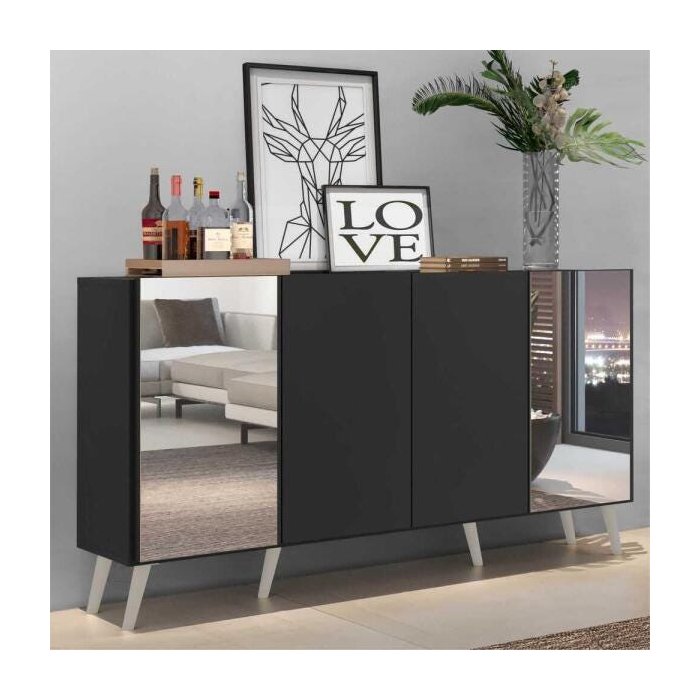 Aparador Buffet com Espelho e Pés Retrô Vegas Preto/Branco
